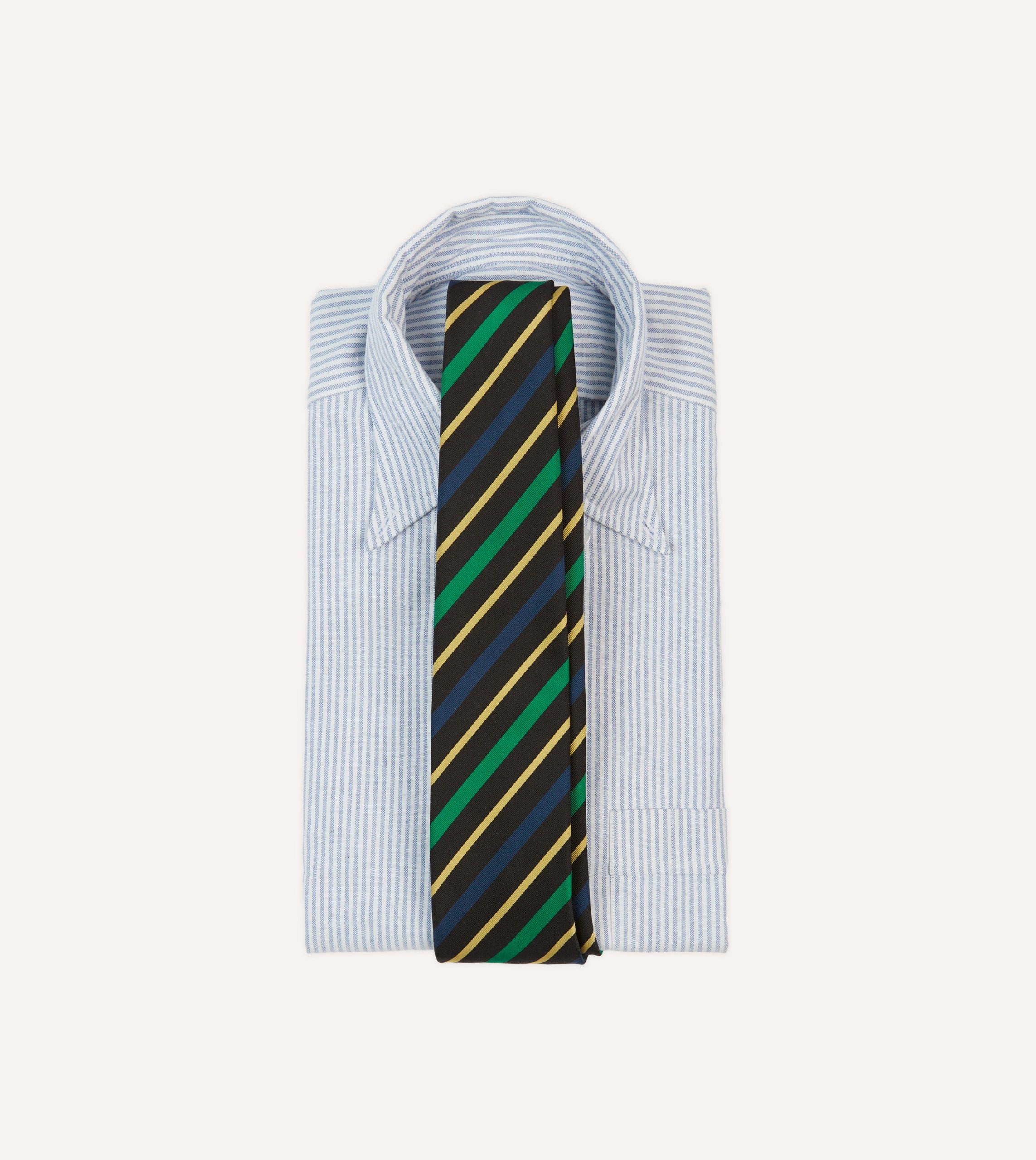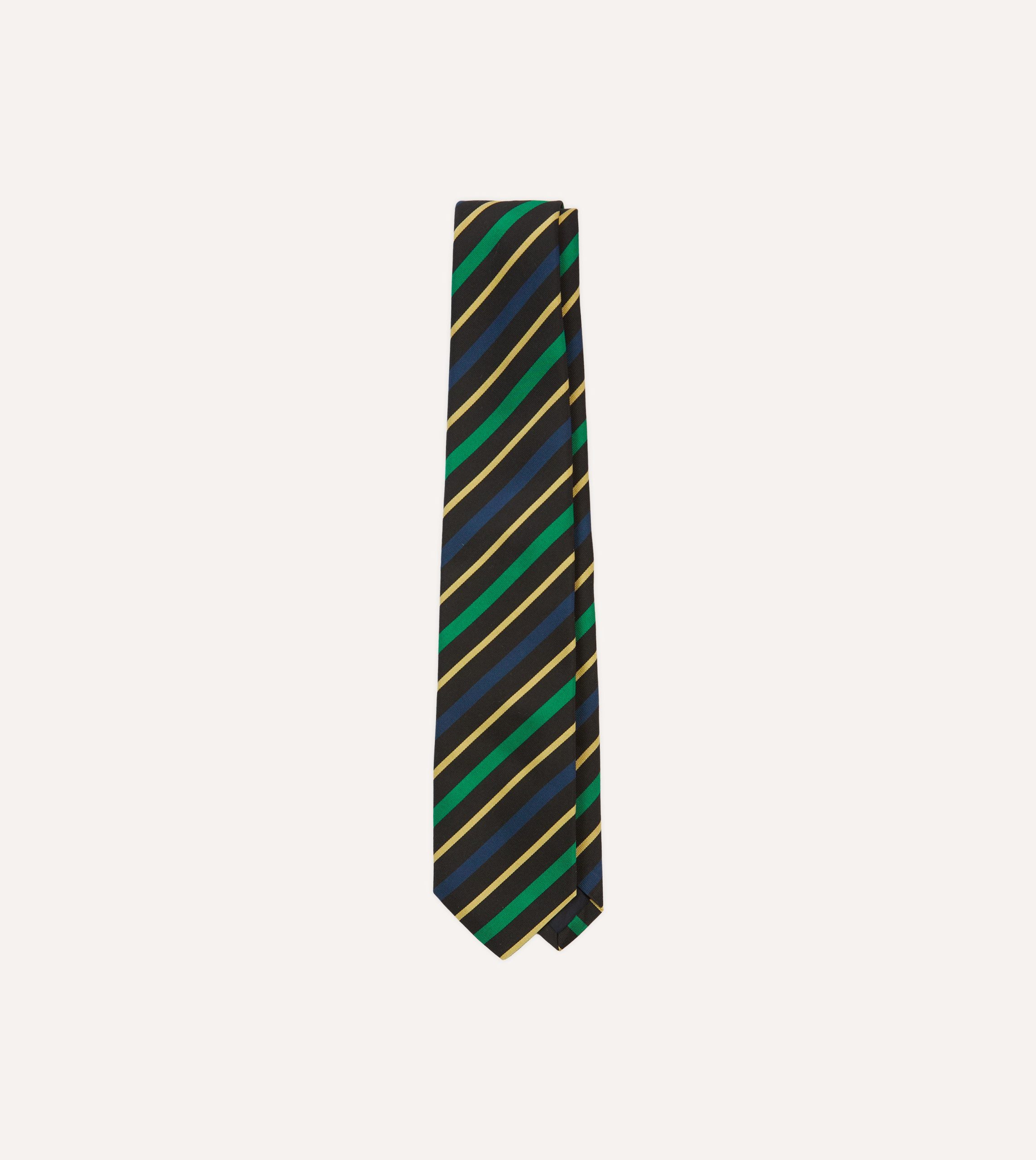 Black. Blue. Green and Yellow Multi Stripe Mogador Silk Tipped Tie