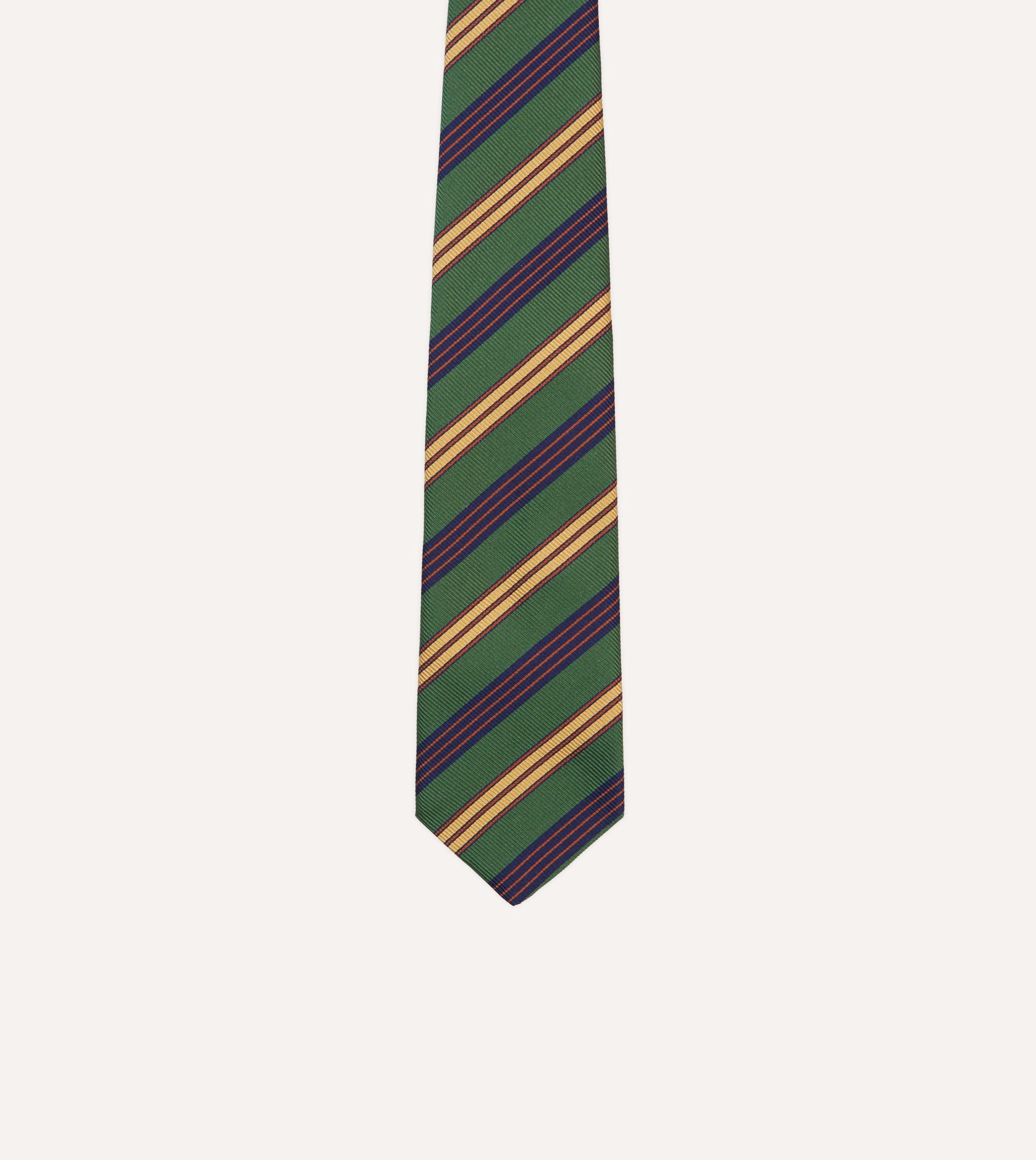 Green and Red Triple Stripe Repp Silk Tipped Tie