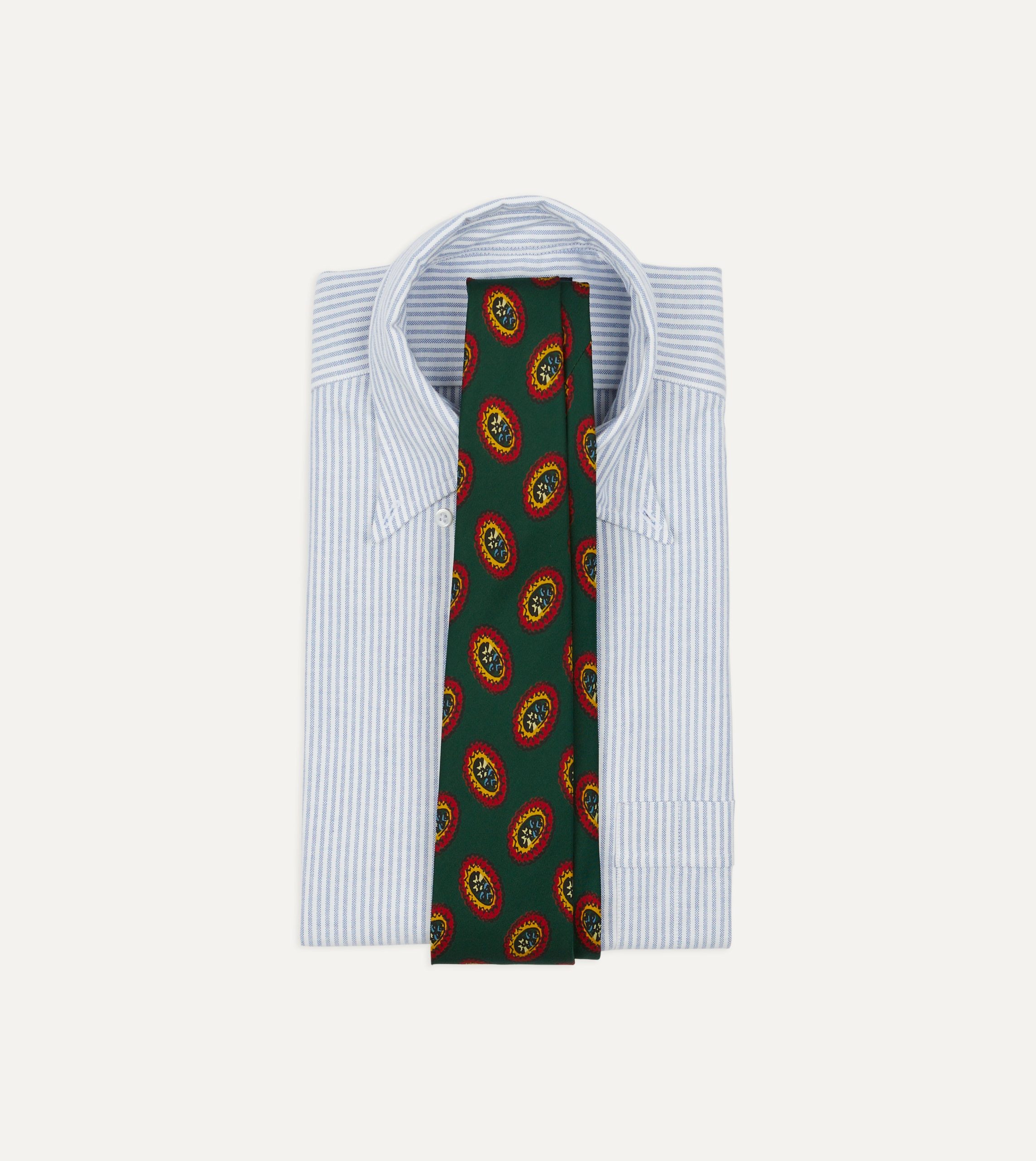 An ornate medallion design simply exudes elegance. particularly when printed on pure silk and hand rolled by our dedicated tiemakers in the heart of east London.