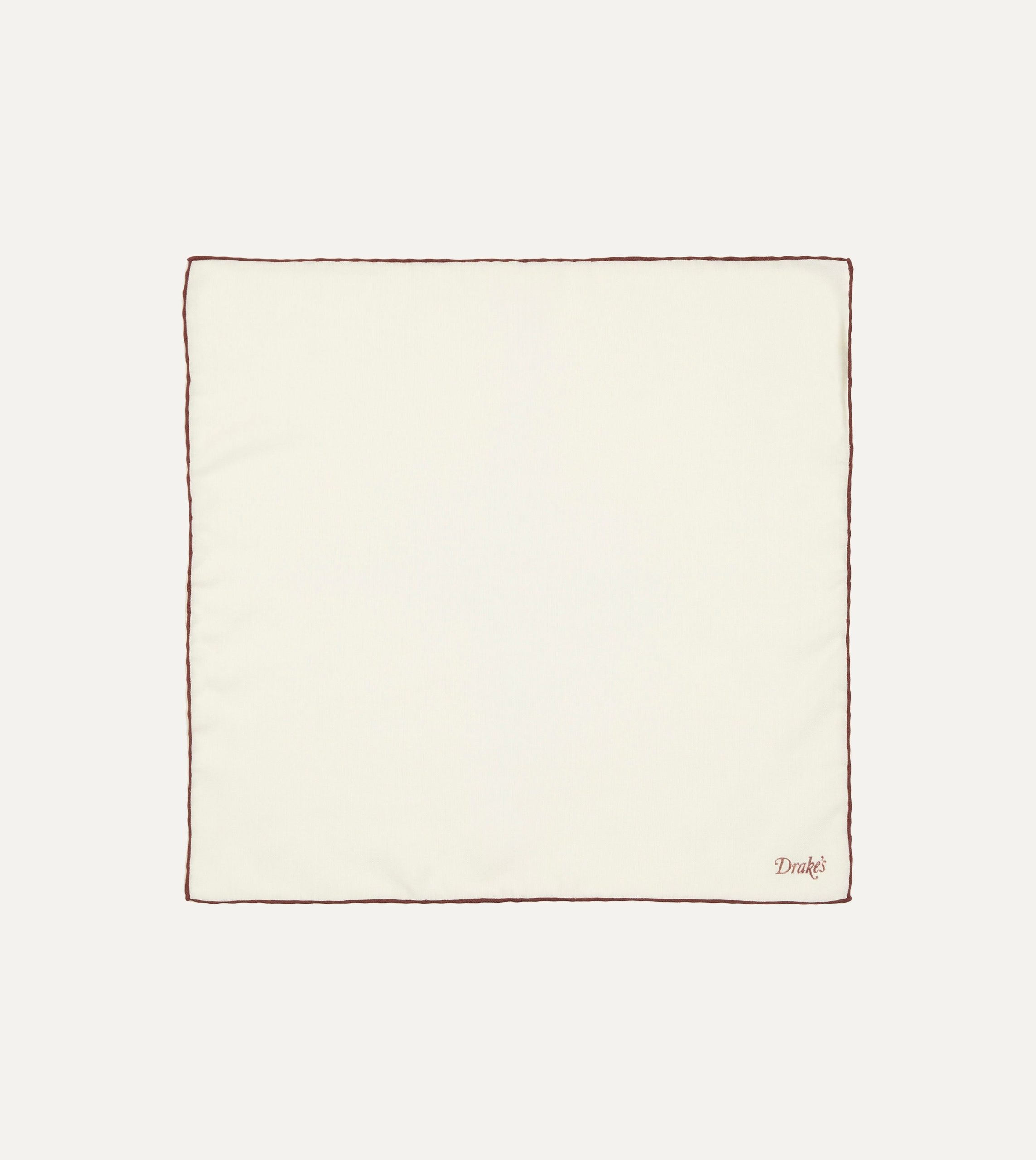 Ivory and Burgundy Shoestring Border Silk Pocket Square