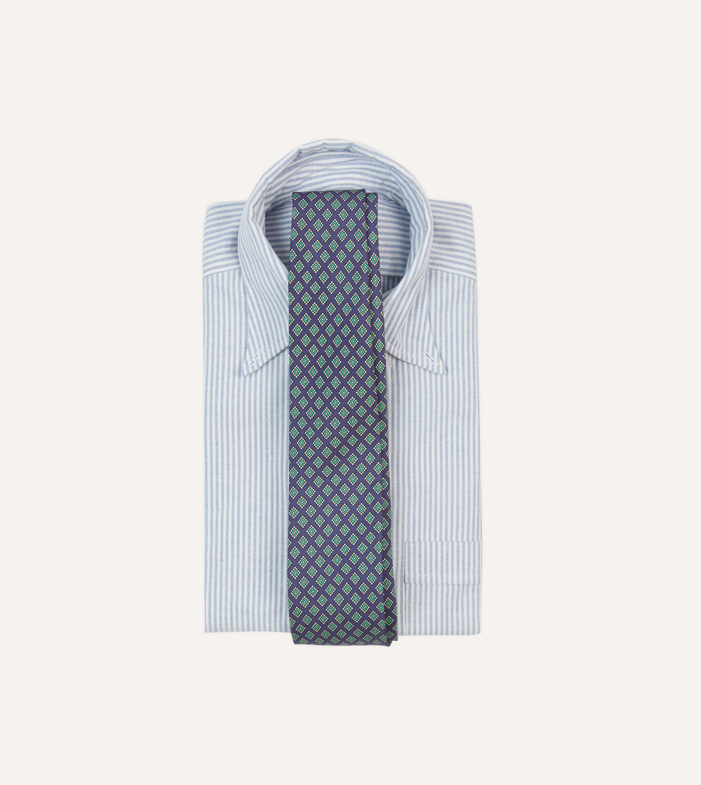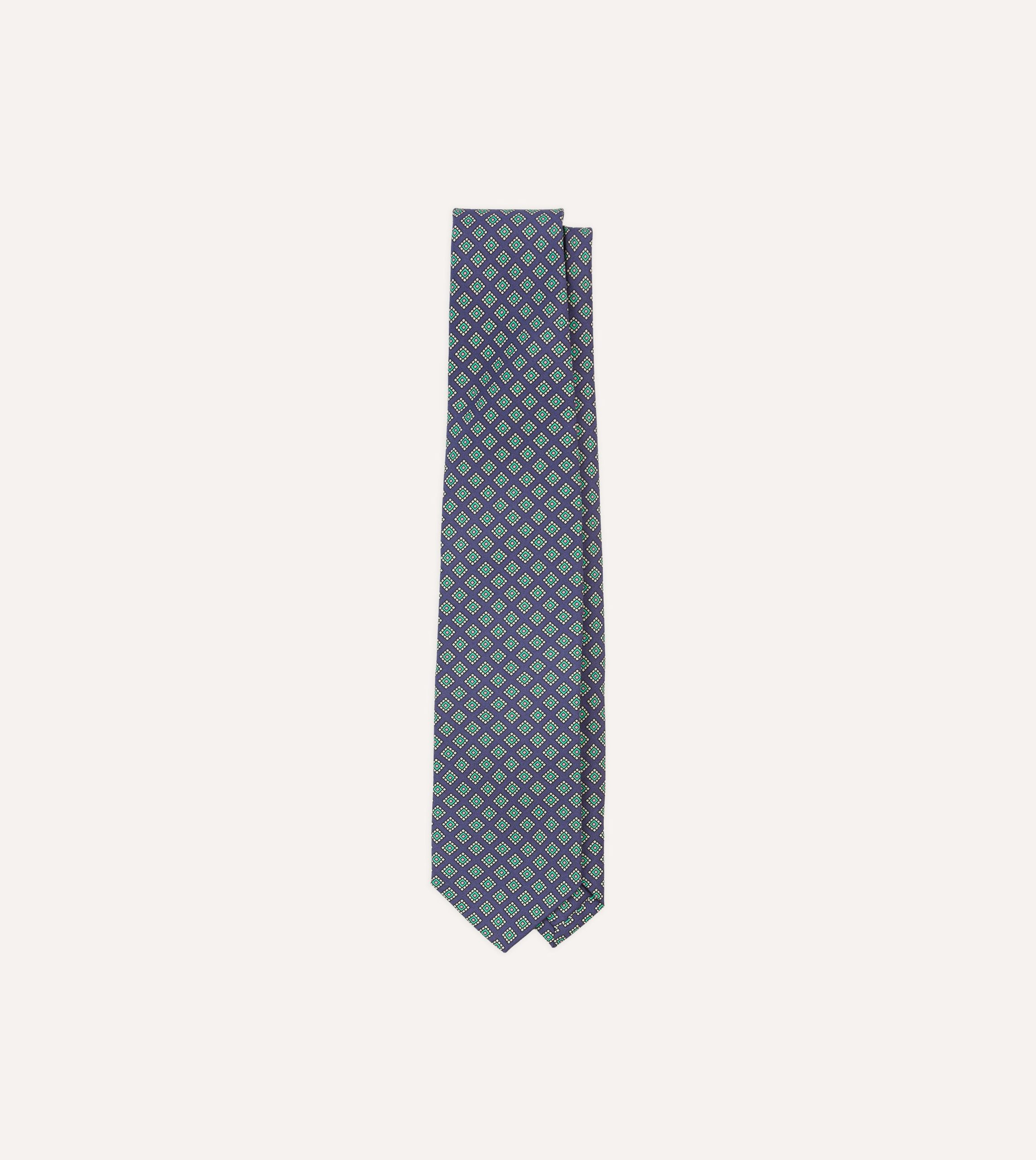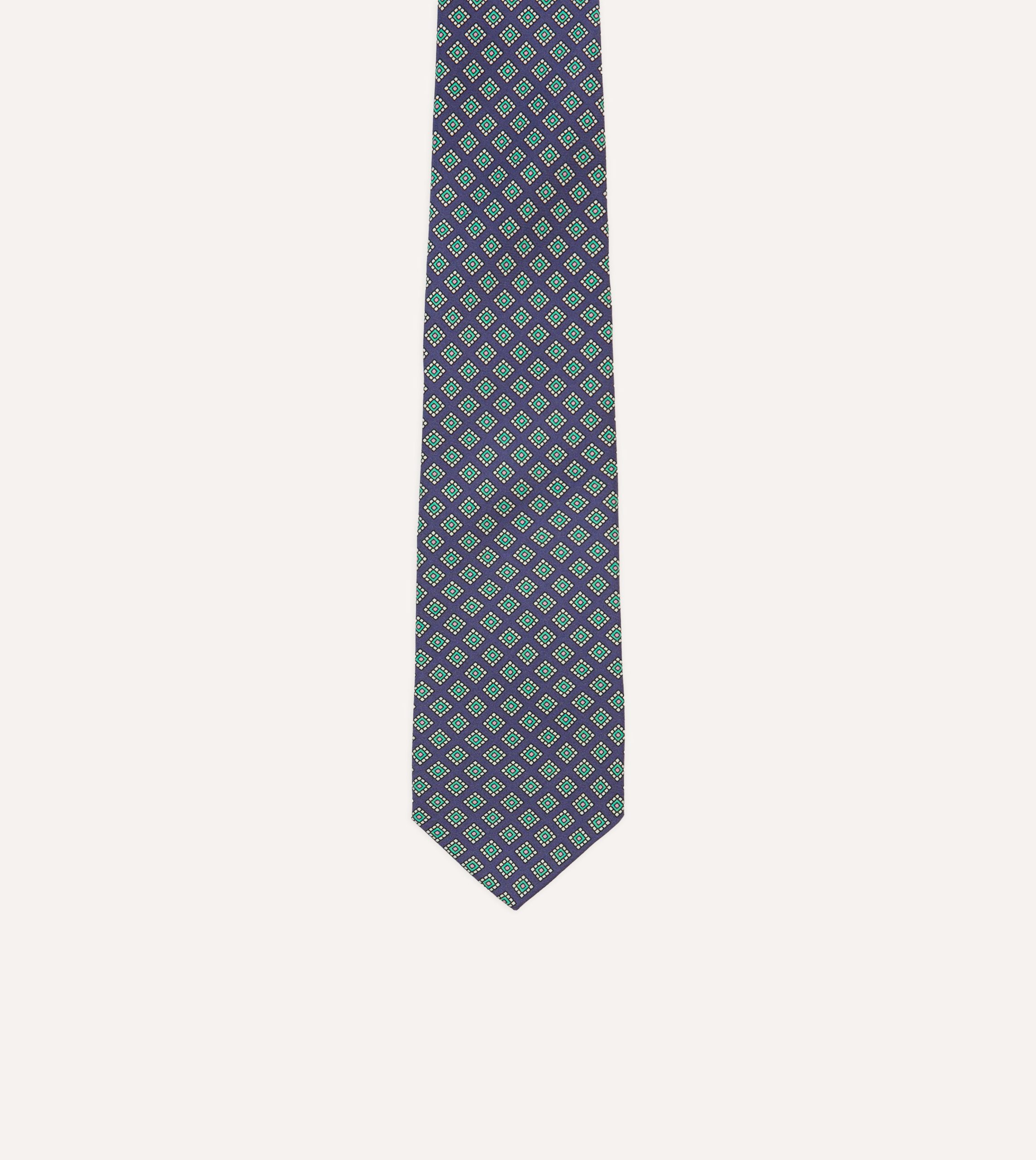 An ornate square motif simply exudes elegance. particularly when printed on pure silk and hand rolled by our dedicated tiemakers in the heart of east London.