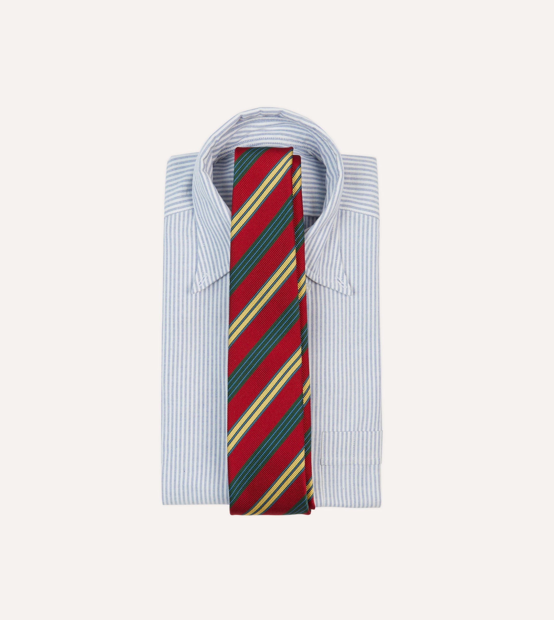 Red and Yellow Triple Stripe Repp Silk Tipped Tie