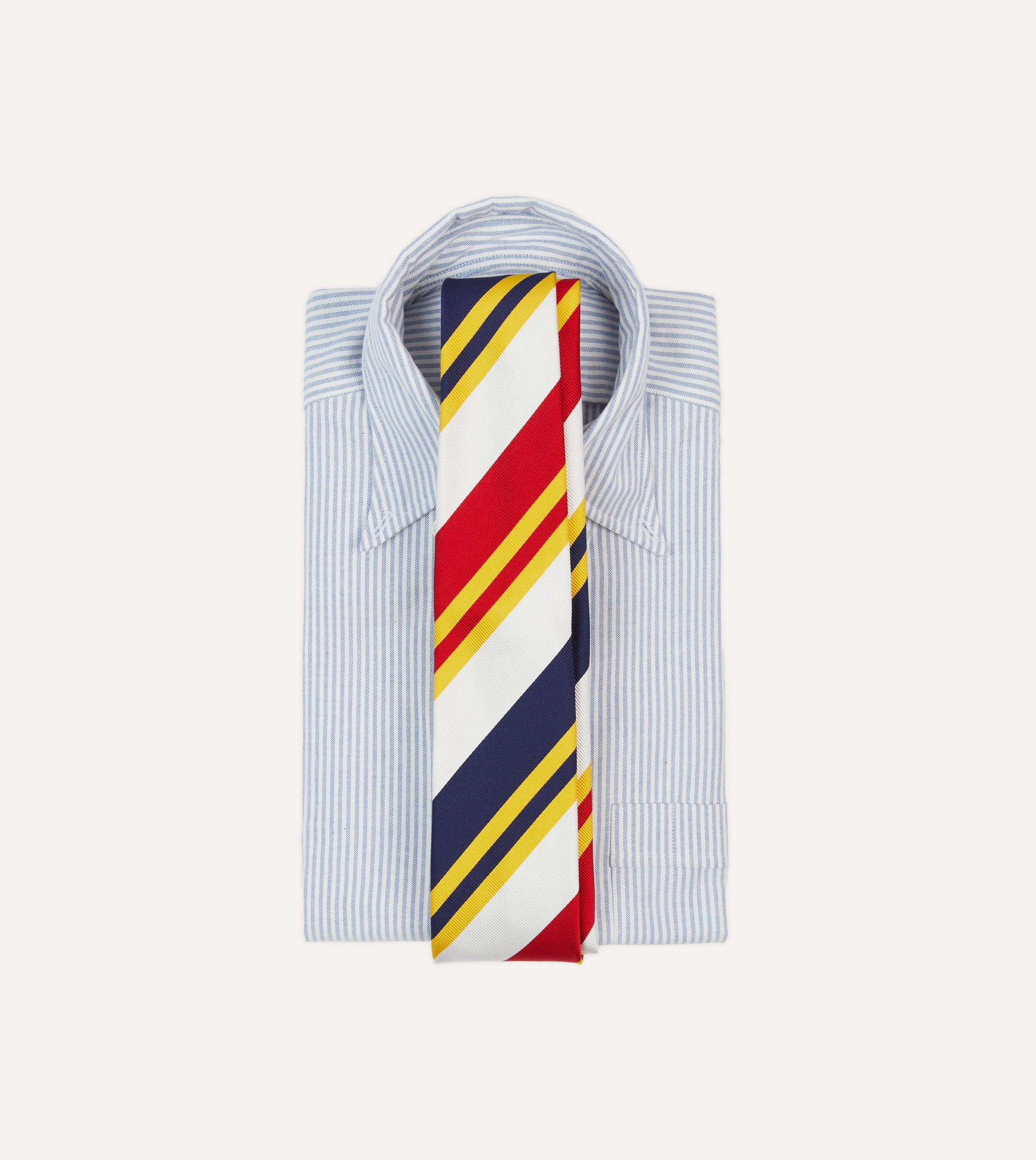 White. Navy. Yellow and Red Wide Stripe Repp Silk Tipped Tie
