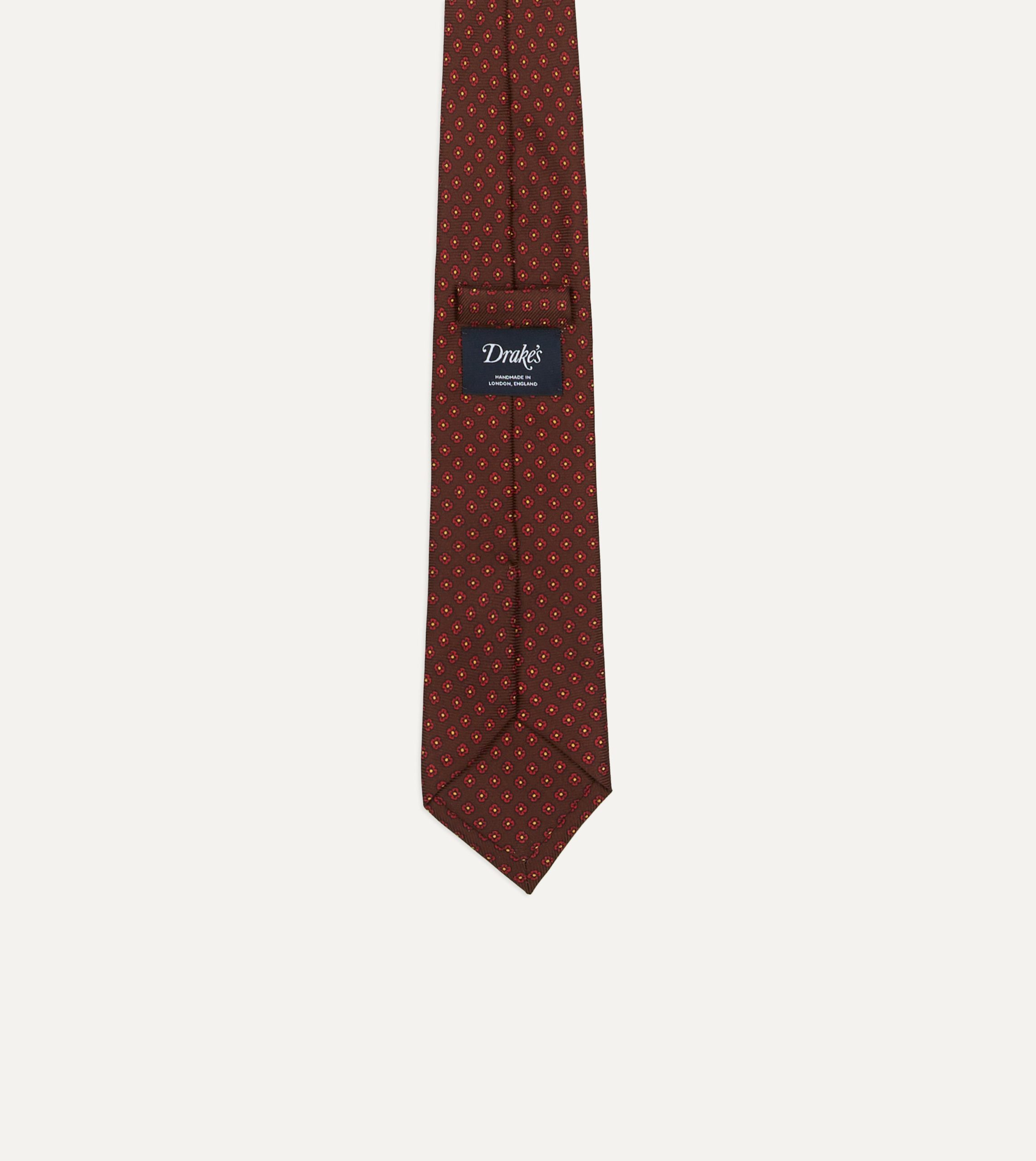 Brown Micro Geometric Print Silk Twill Self Tipped Tie