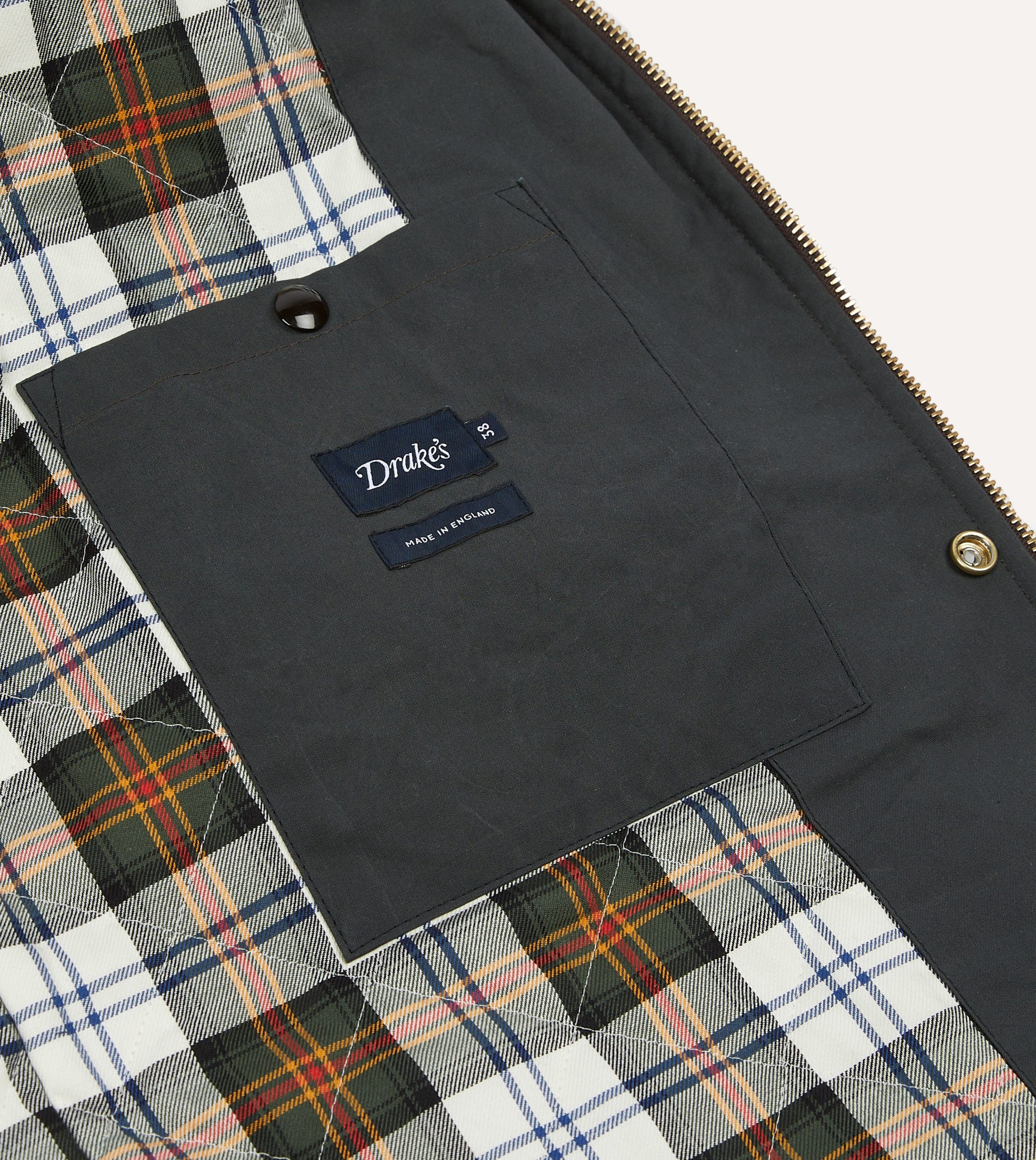 A hearty waxed cotton composition in a traditional emerald green offers unrivalled patination that will only improve with wear. while patch and stud bellows pockets provide ample utility whether strolling in town or stalking in the country.