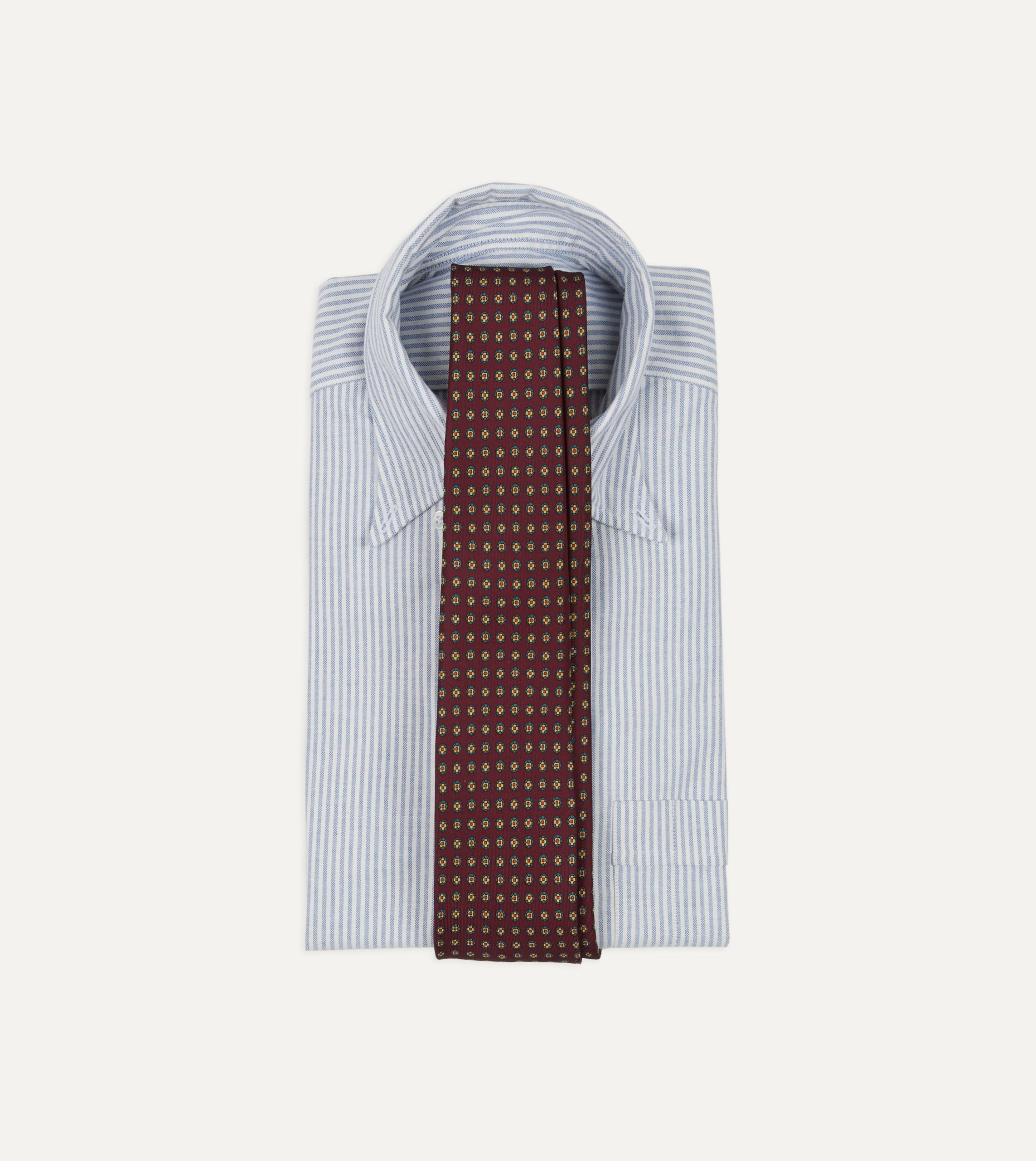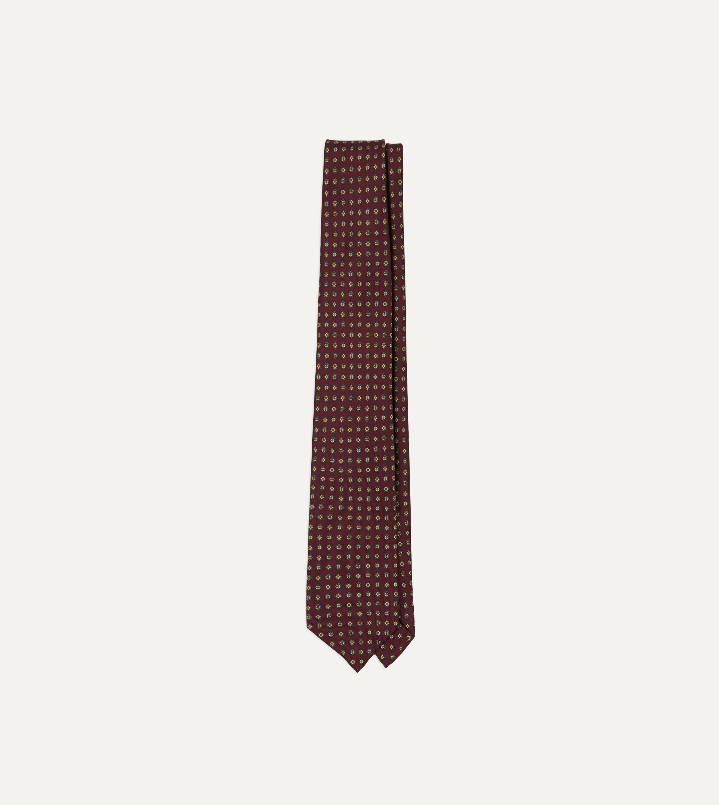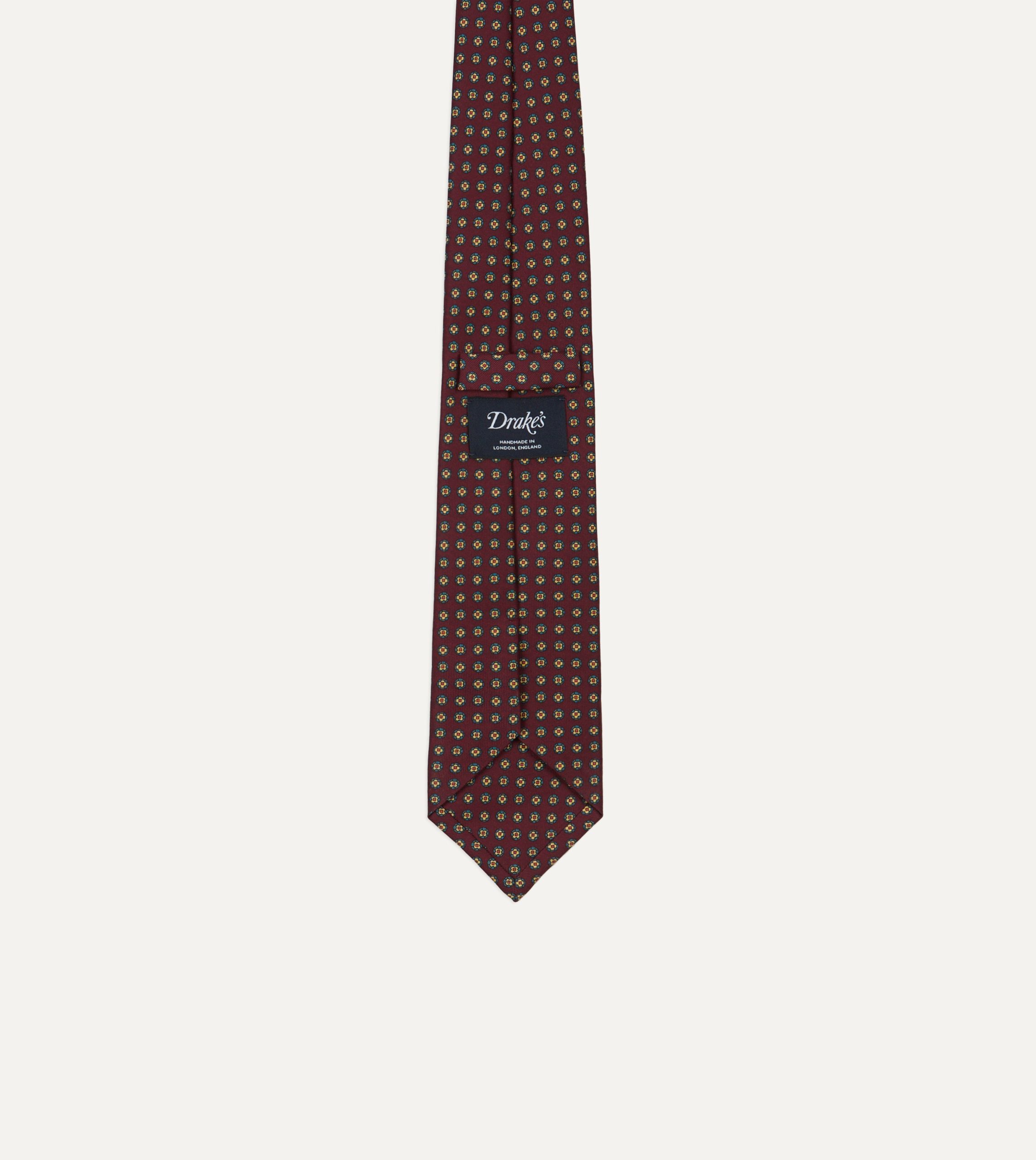 Burgundy Micro Geometric Print Silk Self Tipped Tie