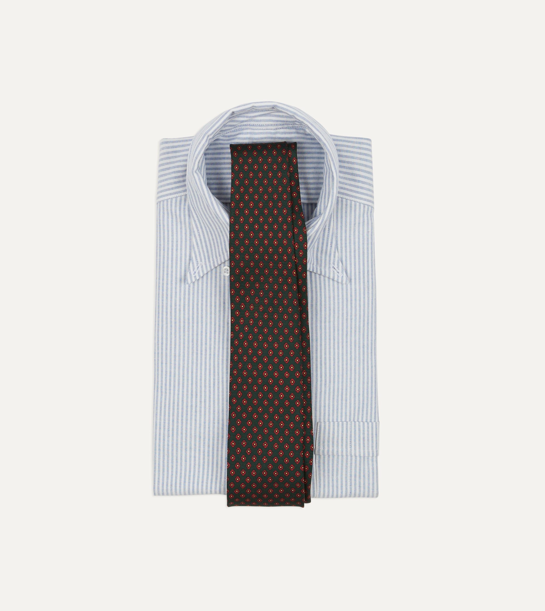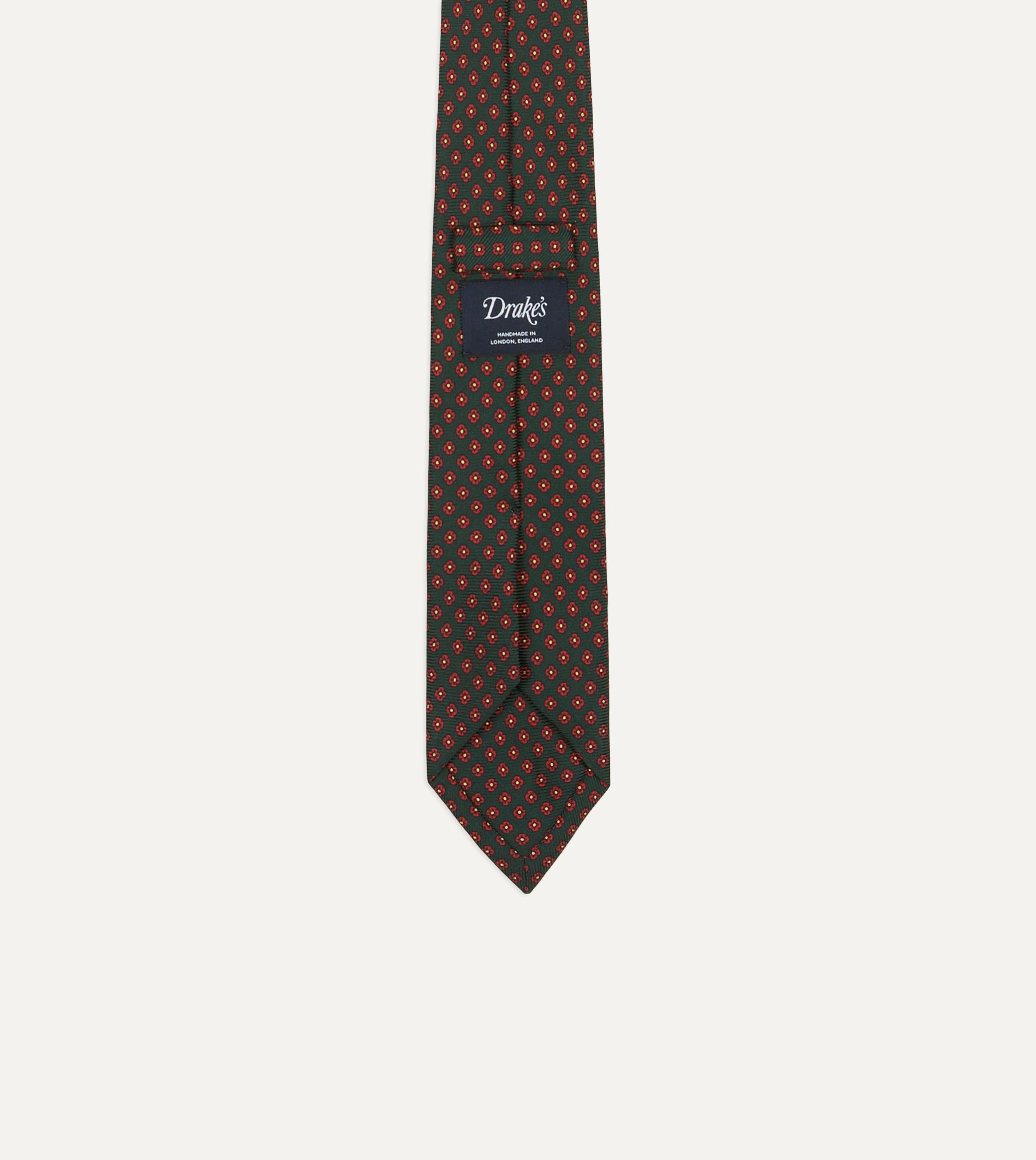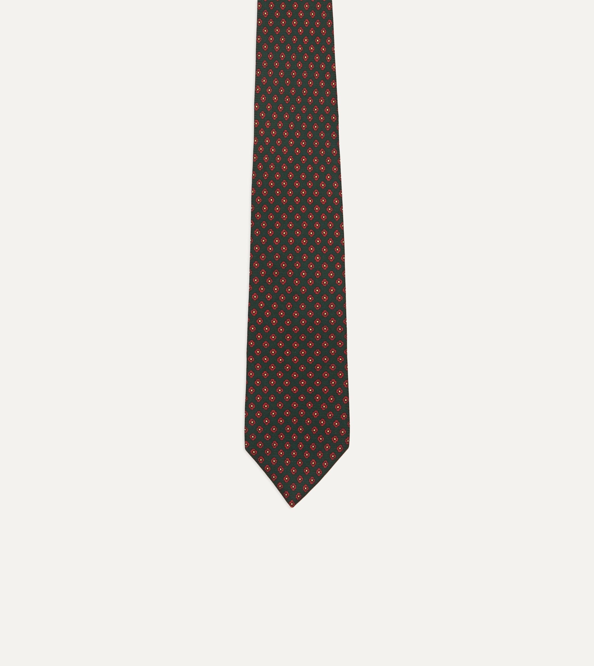 Green Micro Geometric Print Silk Twill Self Tipped Tie