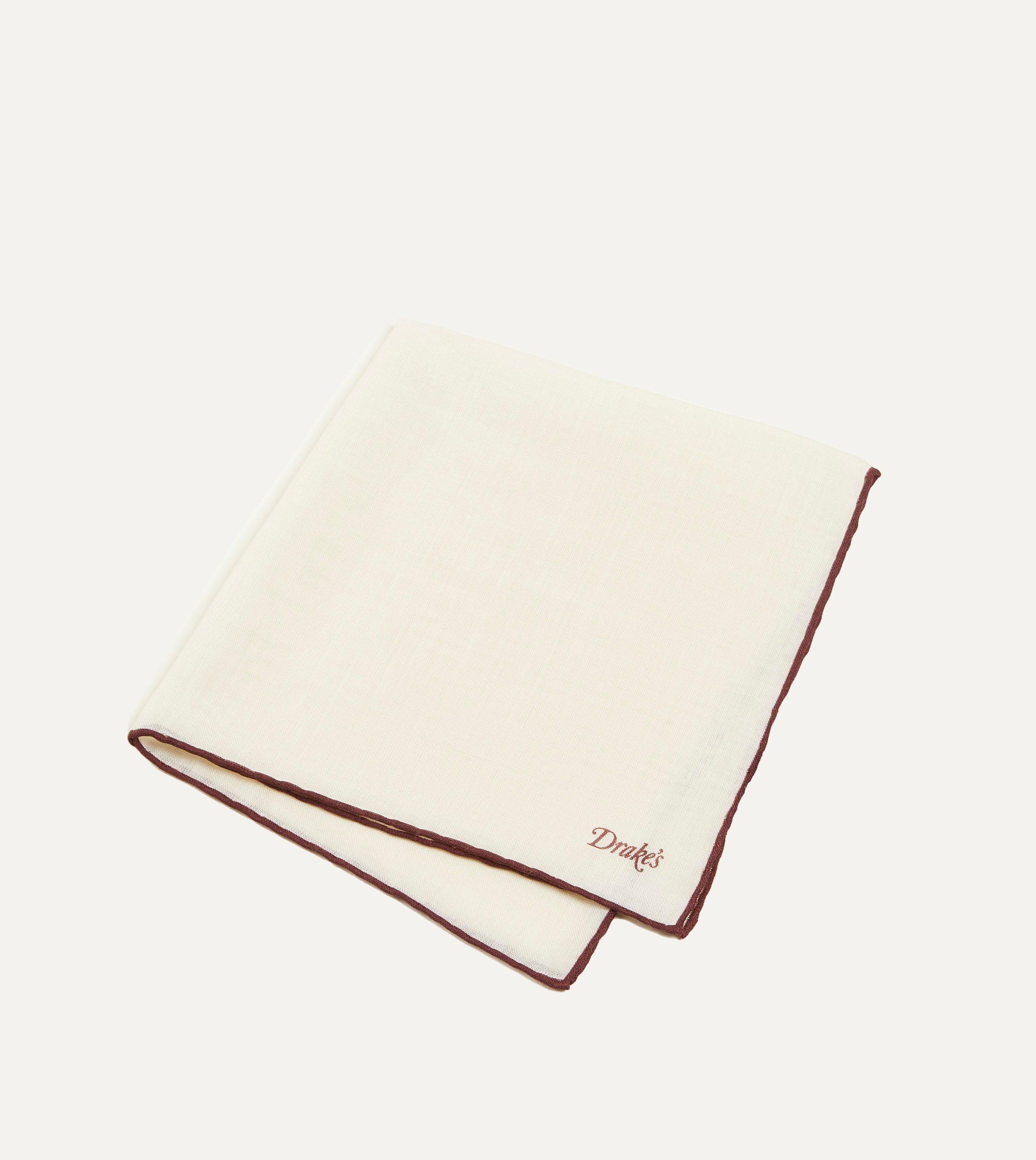 Ivory and Burgundy Shoestring Border Silk Pocket Square