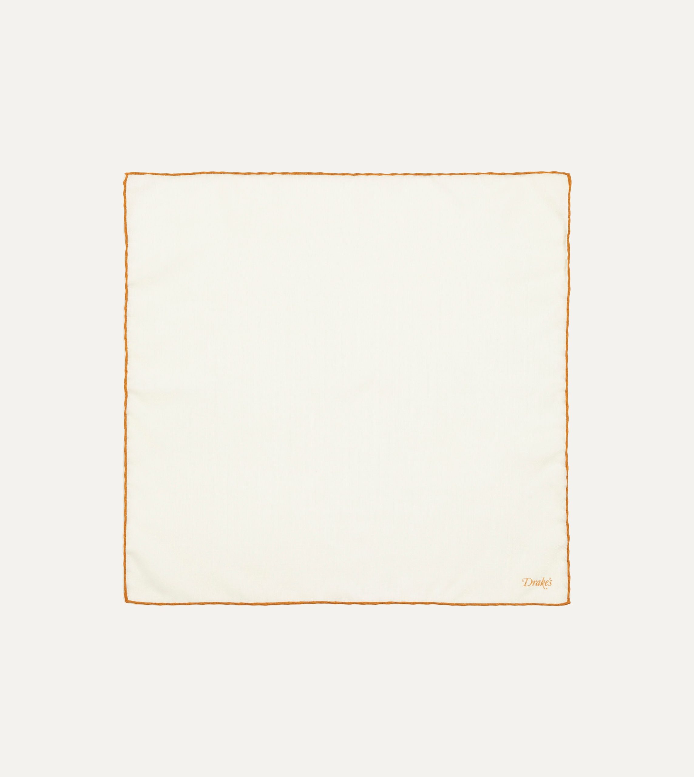 Ivory and Gold Shoestring Border Silk Pocket Square