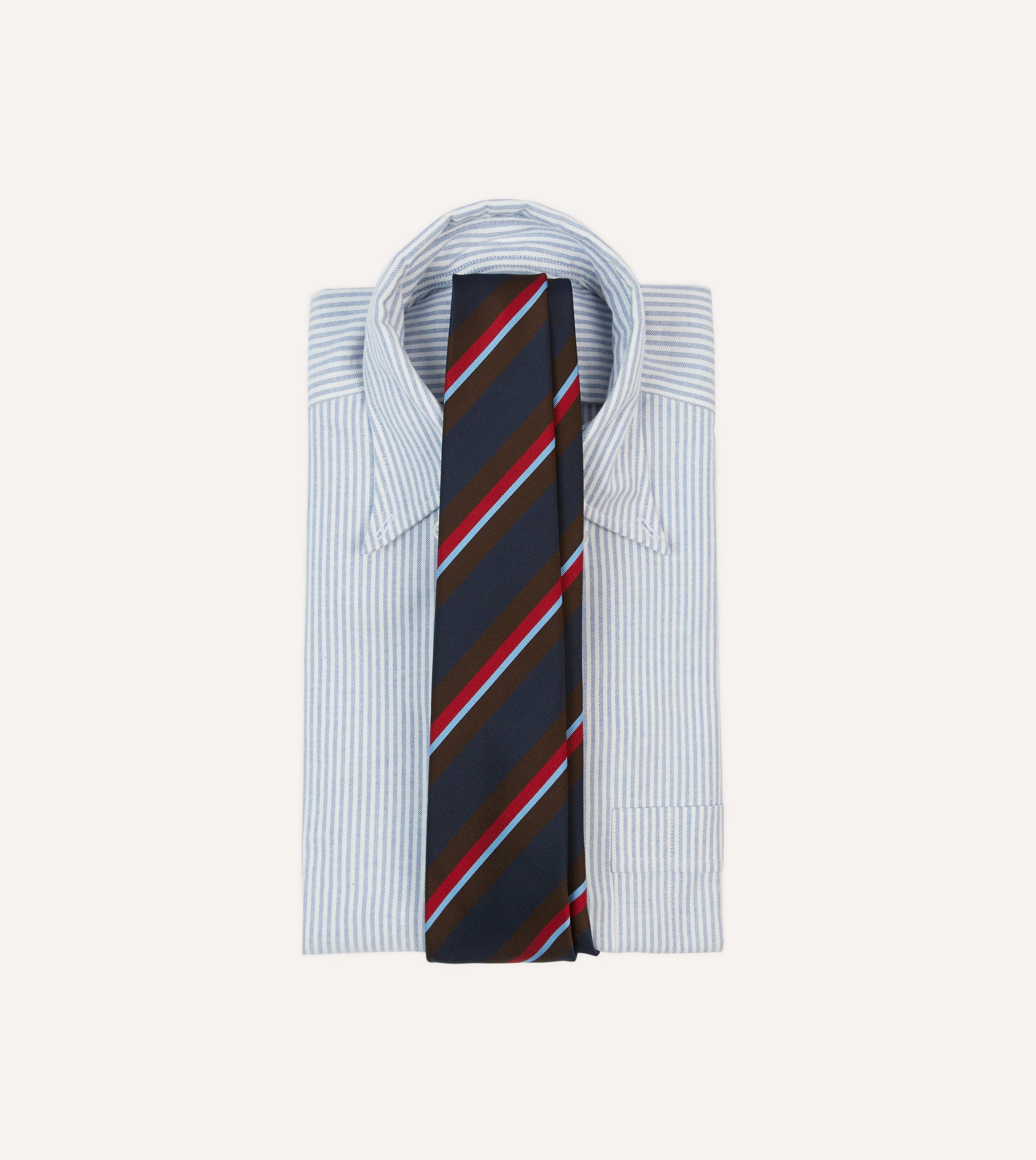 Navy. Brown and Red Stripe Mogador Silk Tipped Tie