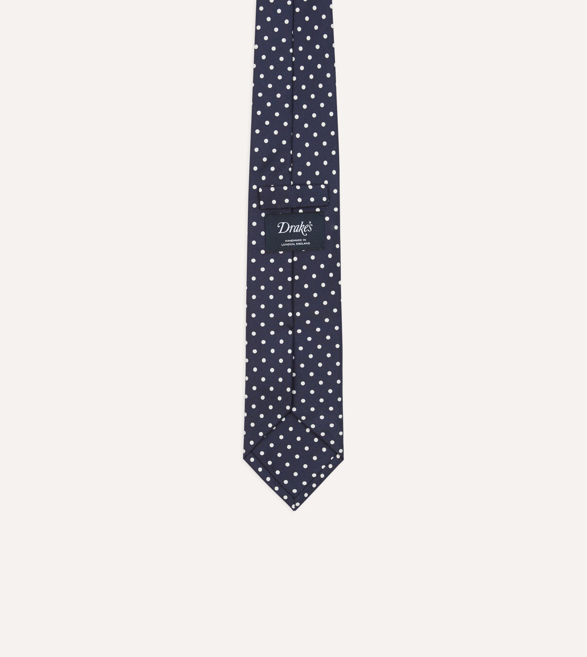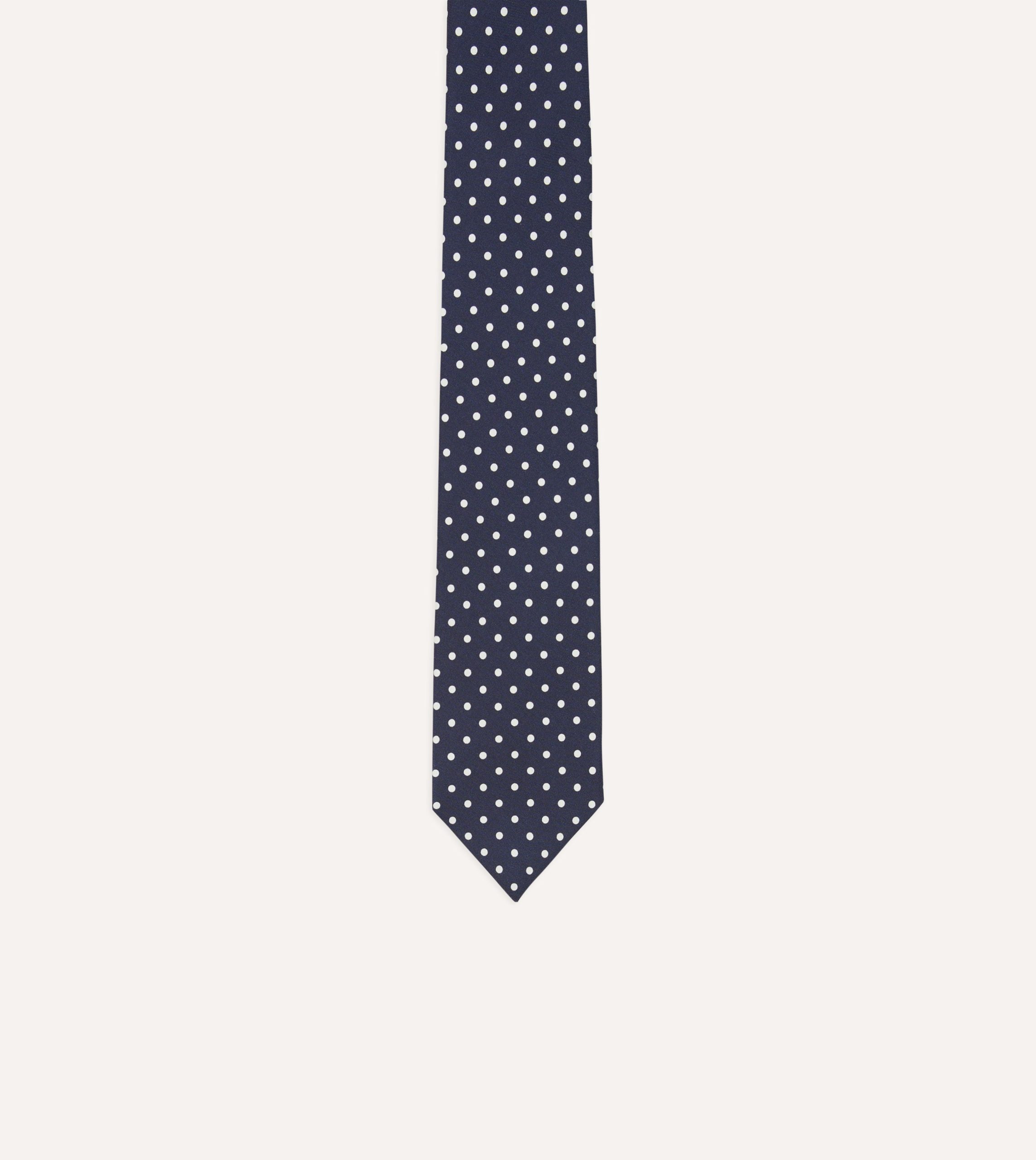 Navy Polka Dot Silk Self-Tipped Tie