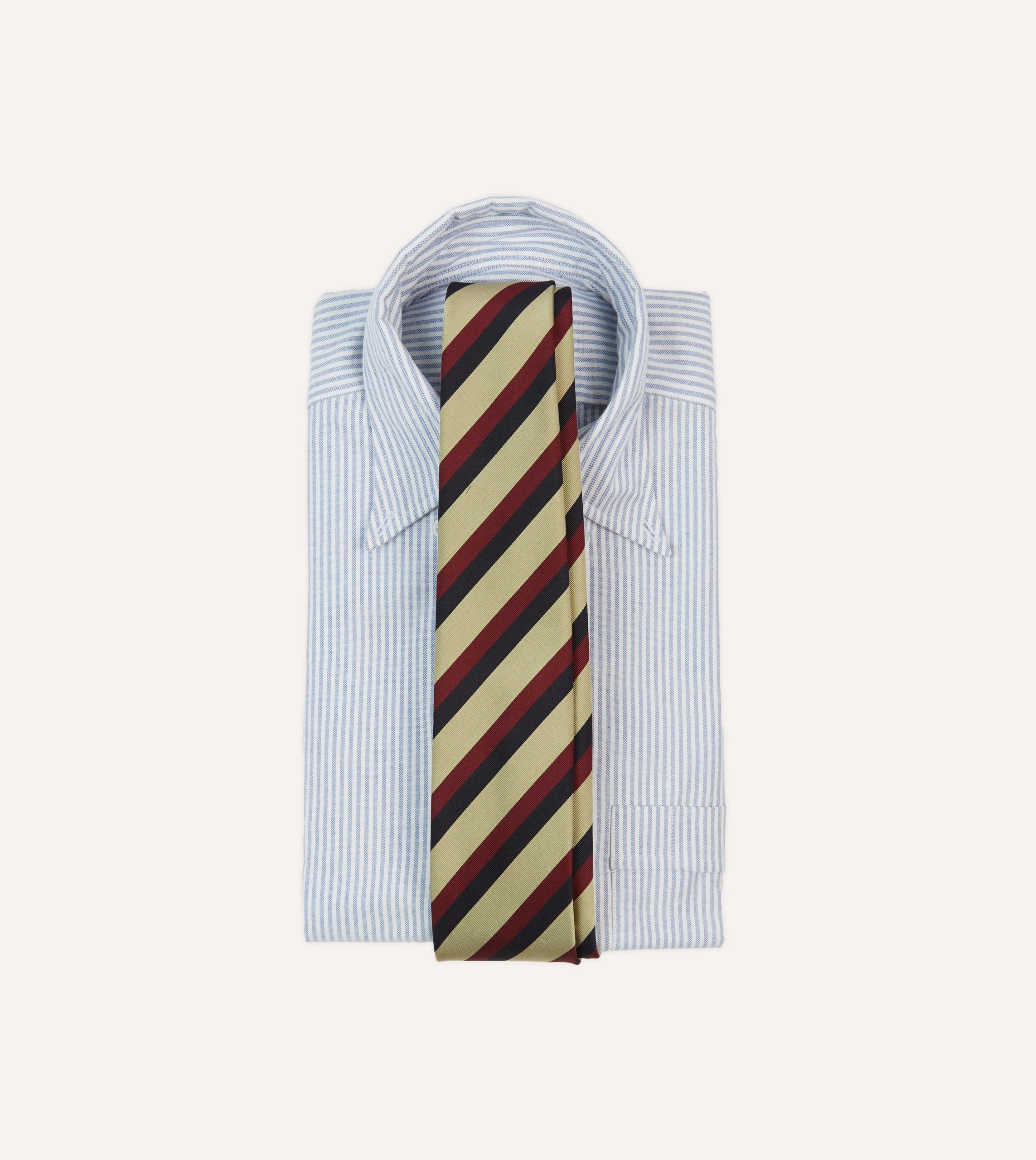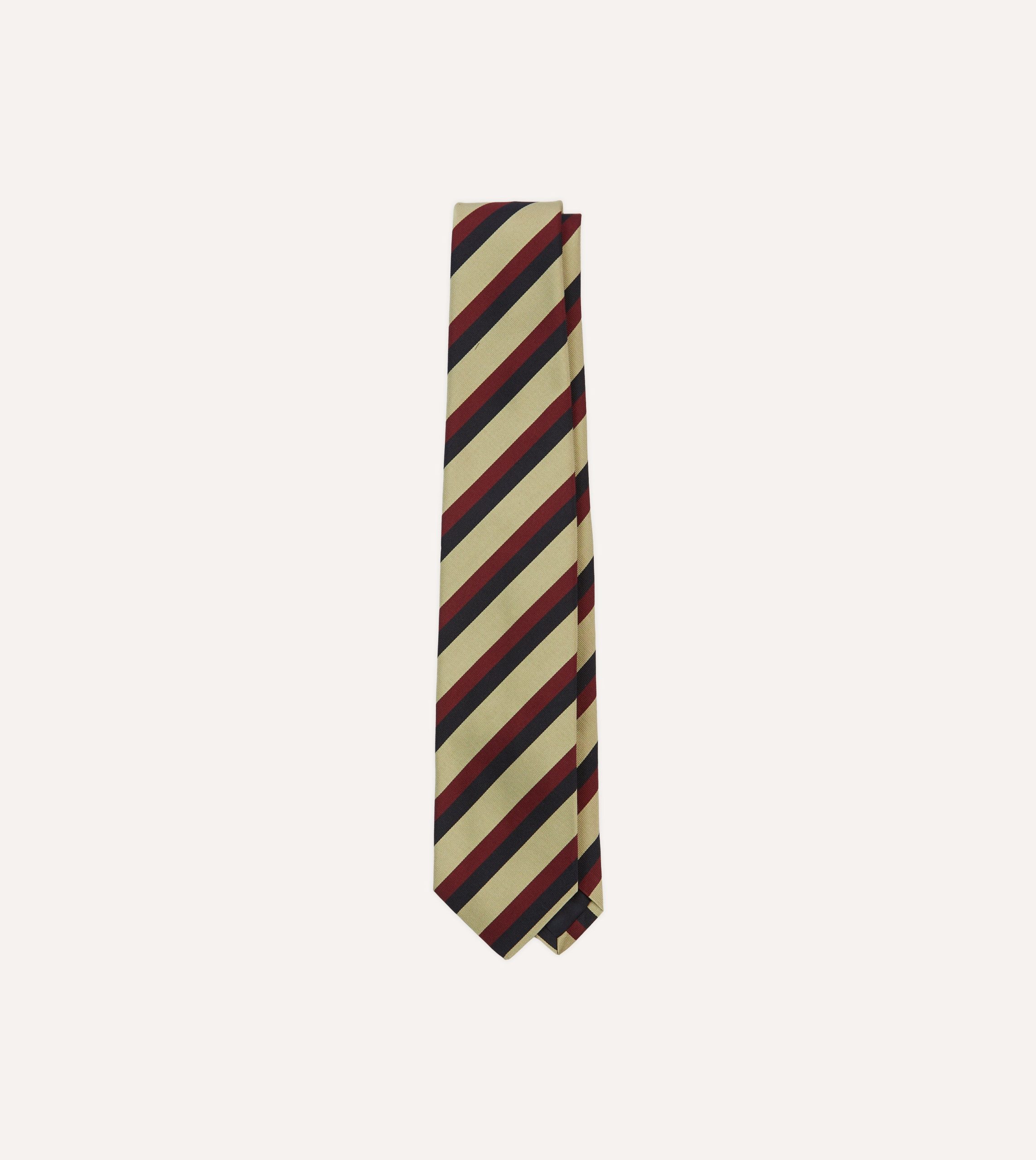 Navy. Red and Buff Stripe Mogador Silk Tipped Tie