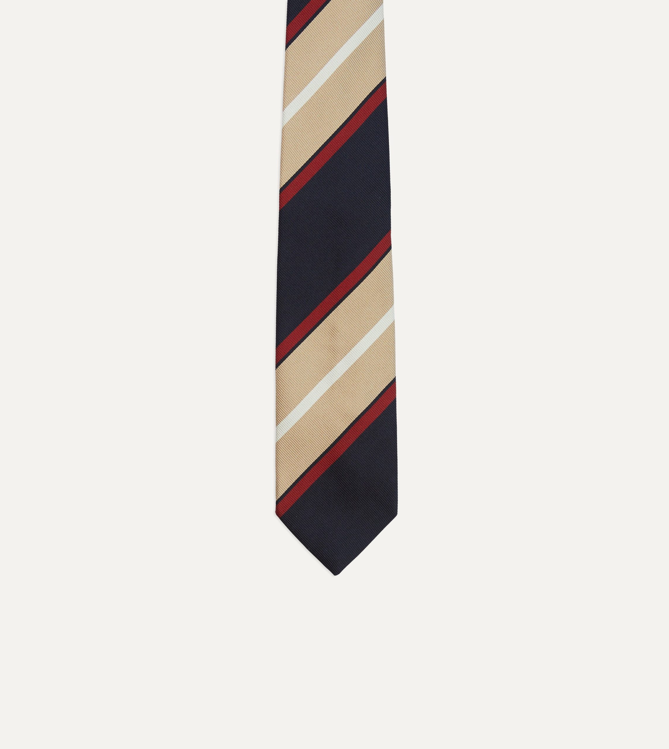 Navy. Red and Gold Multi Stripe Mogador Silk Tipped Tie