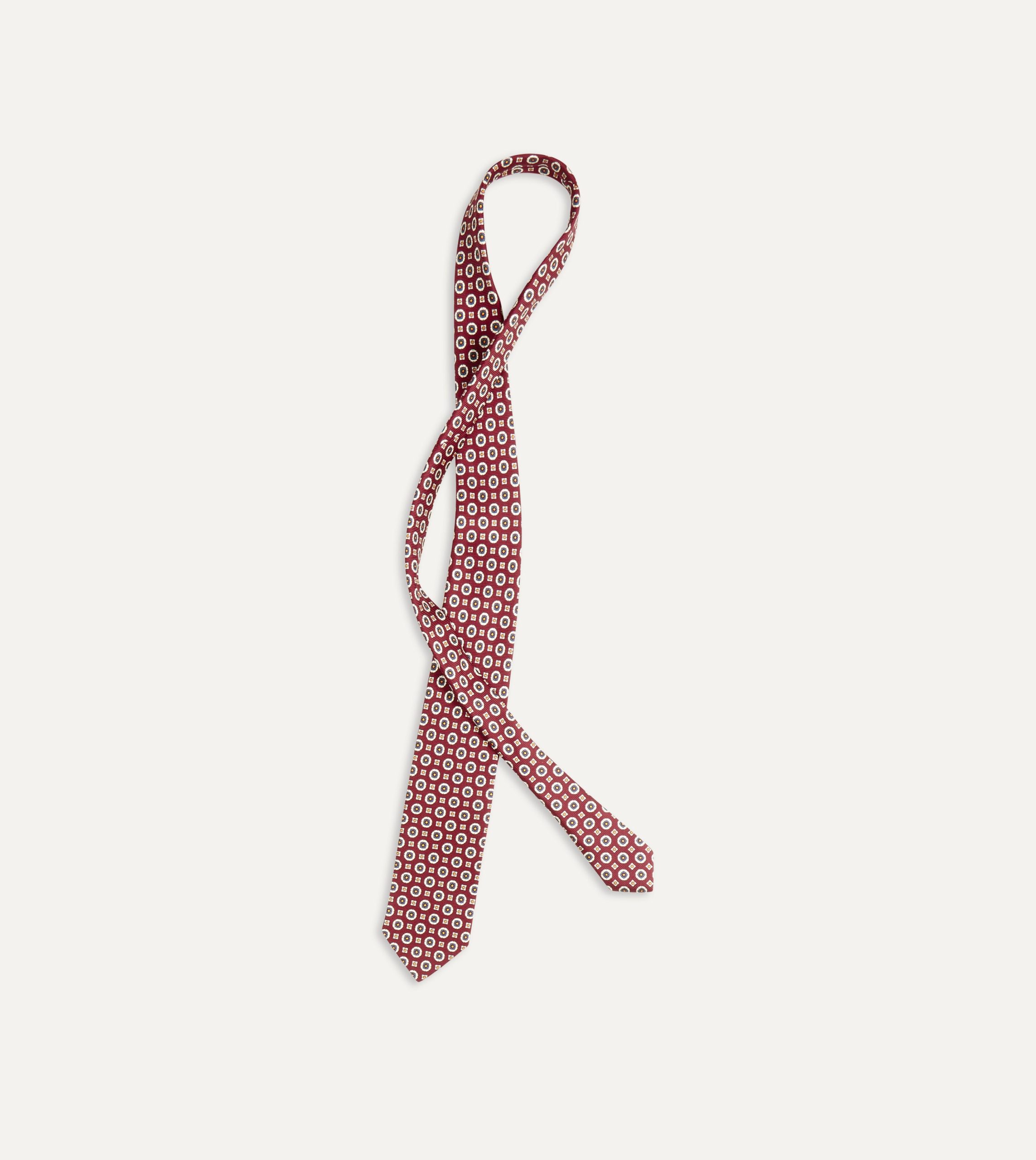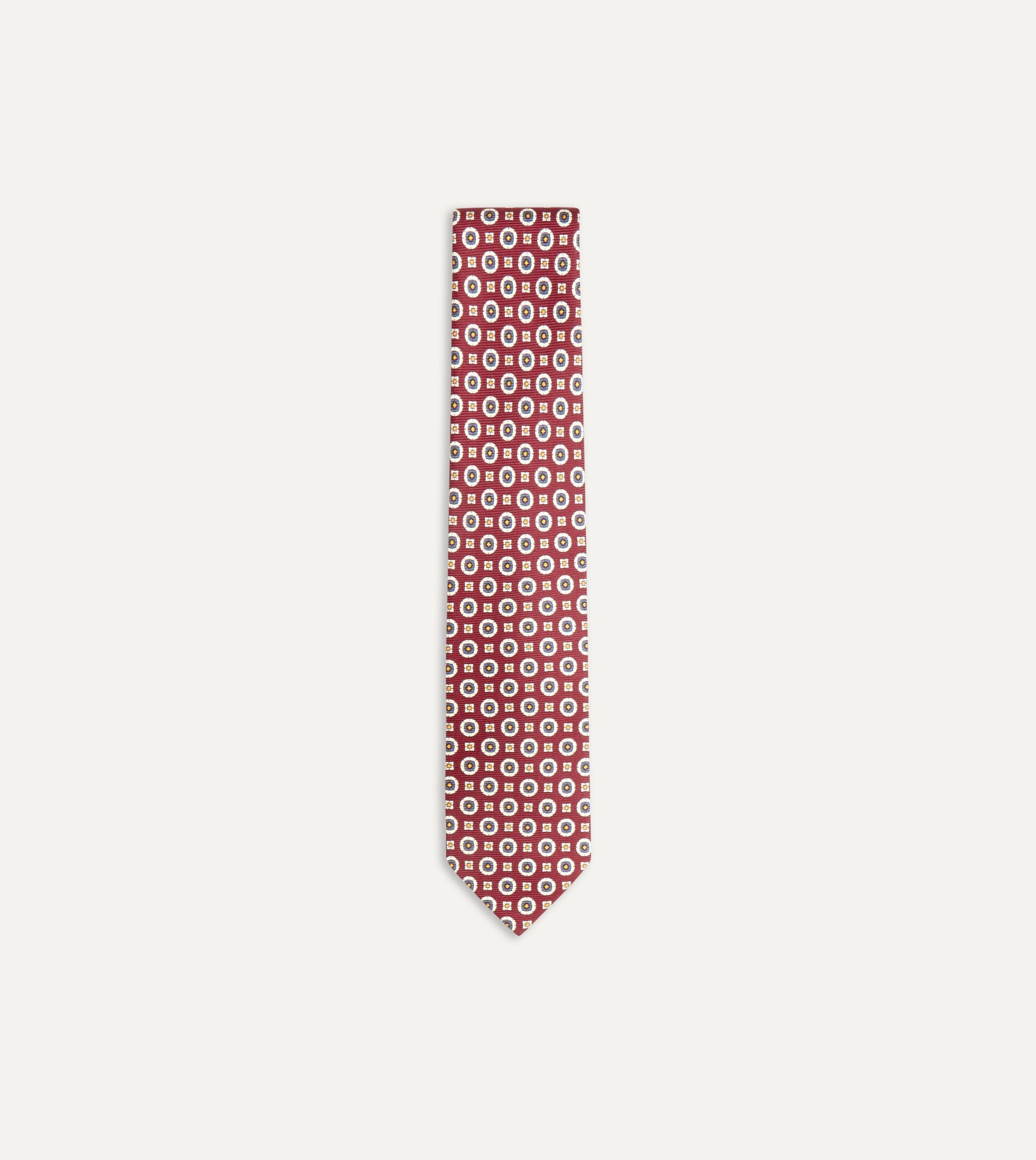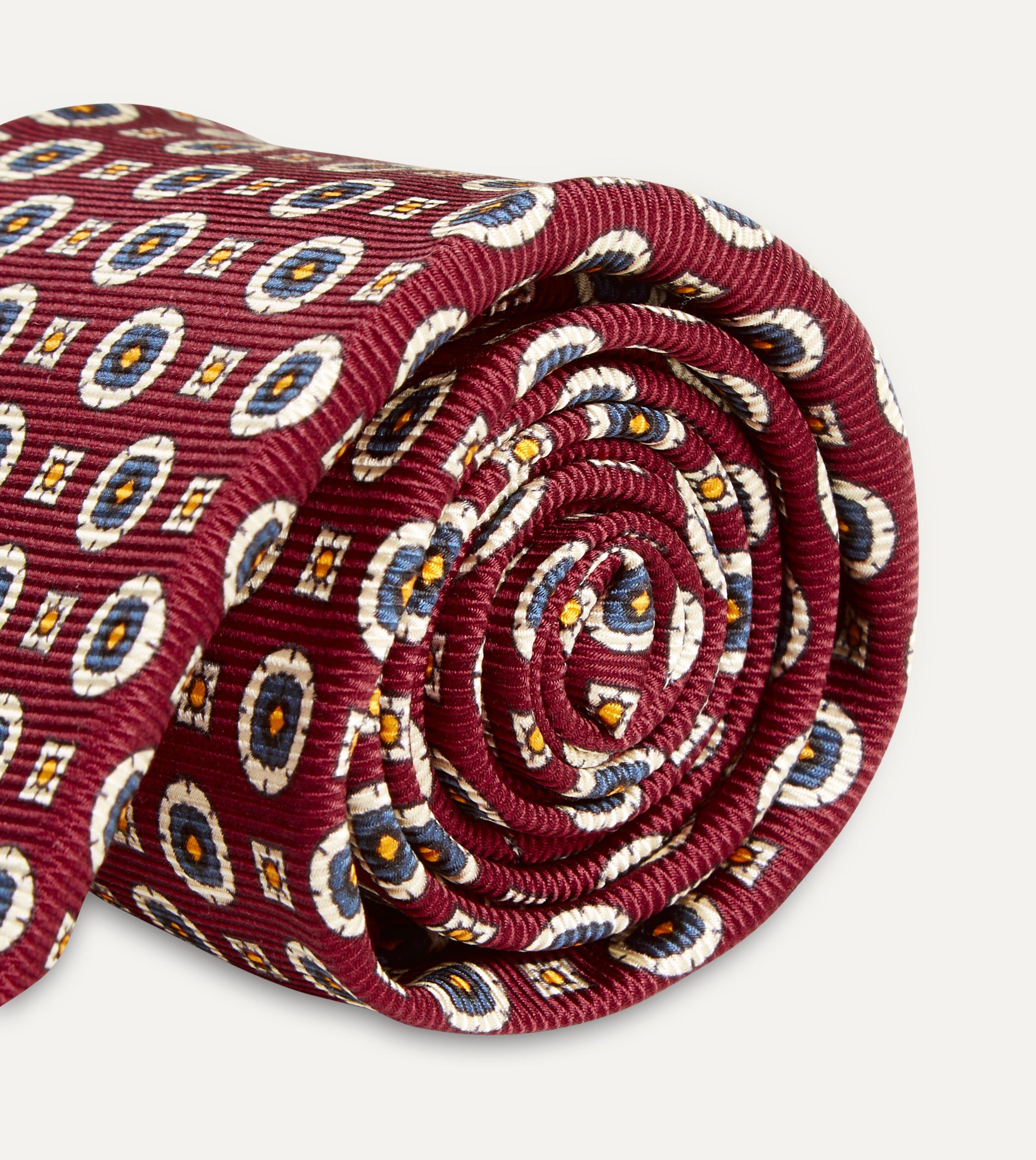 An ornate medallion design simply exudes elegance. particularly when printed on pure silk and hand rolled by our dedicated tiemakers in the heart of east London.