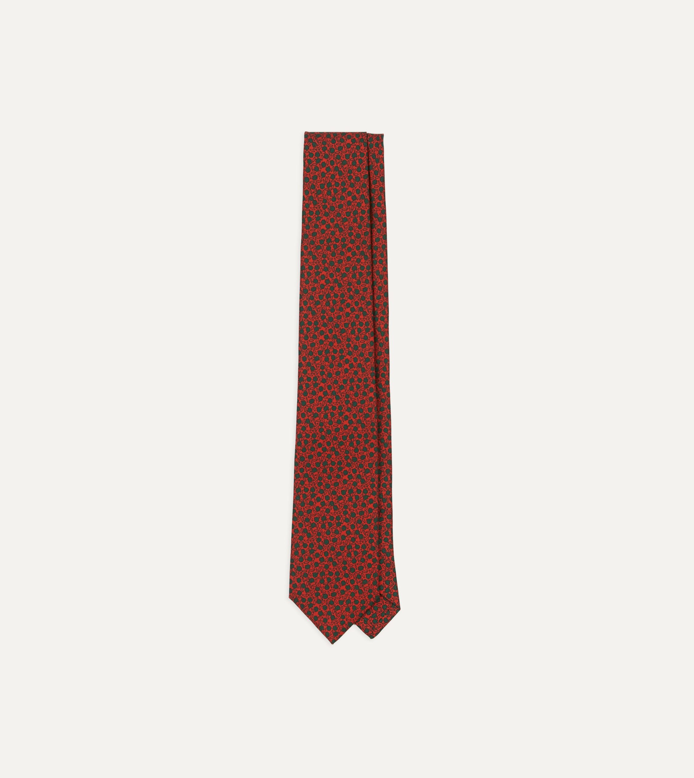 Red Mini Leaves Print Foulard Silk Self Tipped Tie